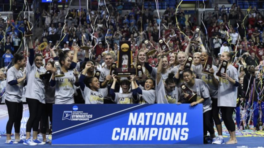 ST. LOUIS ββ Trailing two-time defending champion Oklahoma by .175 heading into the final rotation of the night. But UCLA turned in a performance for the ages at the NCAA Women's Gymnastics Championships on Saturday evening. The Bruins scored an NCAA record 49.75 on balance beam to earn the 2018 NCAA title at Chaifetz Arena in St. Louis.