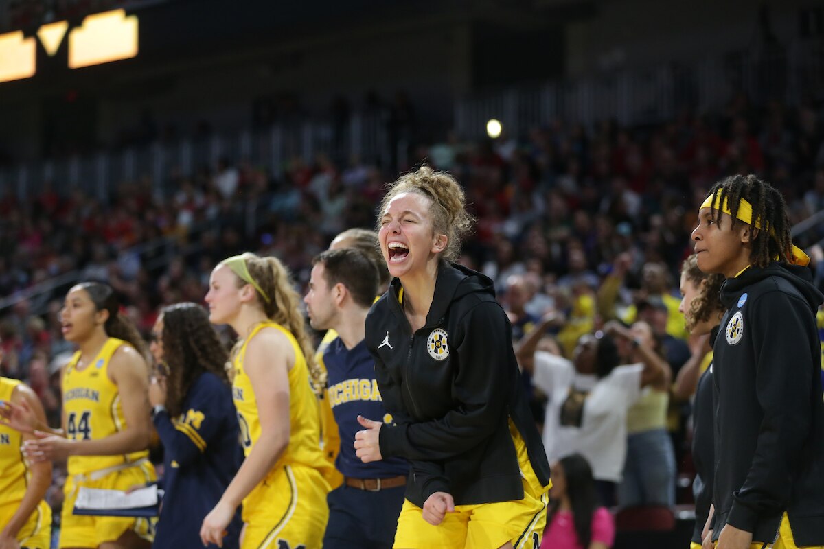 Though the Wolverines, playing the Elite Eight for the first time, missed their first eight shots, Michigan stayed close enough to make a run once shots began to fall. Maddie Nolan is 2 for 3 on 3-pointers off the bench for Michigan. Chelsie Hall is 2 for 2 from distance, helping Louisville convert on four 3-pointers in the first period.