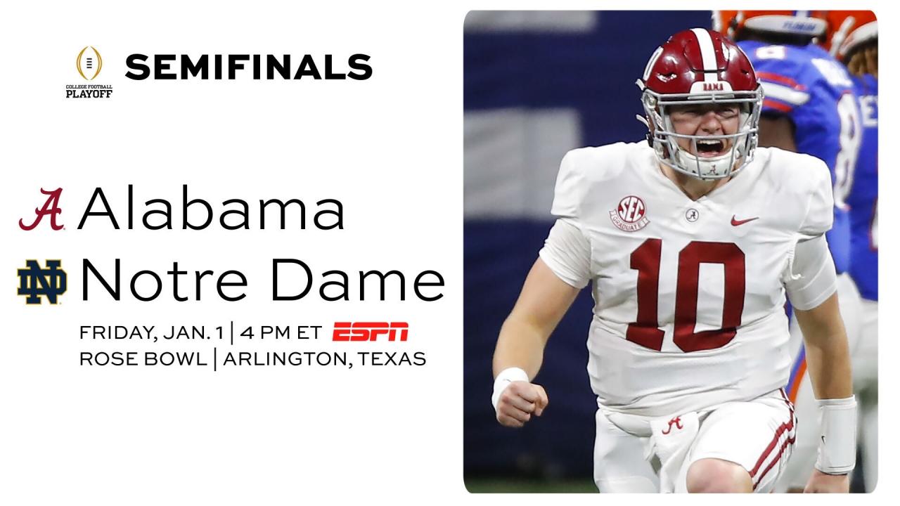 The Fighting Irish will face Alabama in the semifinals of the College Football Playoff on Friday, Jan. 1, 2021.