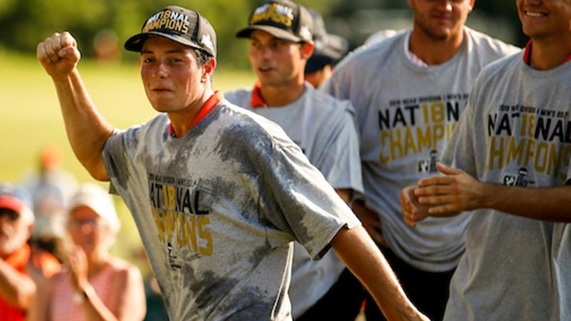Just behind Puig, Cameron Sisk clawed back from down two on the 15th and eventually take it to the 18th. There, Travis Vick played a clean hole, avoiding the rough or hazards, and brought his birdie putt close enough for a concession from Sisk to win the national championship.