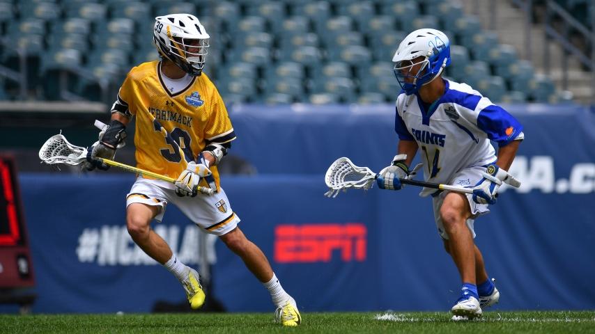 The 2021 DII men's lacrosse championship is Sunday, May 30, at Pratt and Whitney Stadium at Rentschler Field in East Hartford, Connecticut. Merrimack (above) is the defending champion.