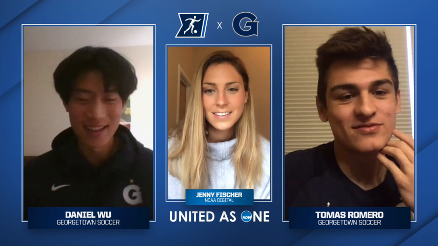 Georgetown men's soccer's Daniel Wu and Tomas Romero joined krikya18.com's Jenny Fischer to discuss the Hoyas' 2019 national championship. Wu and Romero are freshmen, but they both made clutch plays in the title game against Virginia.