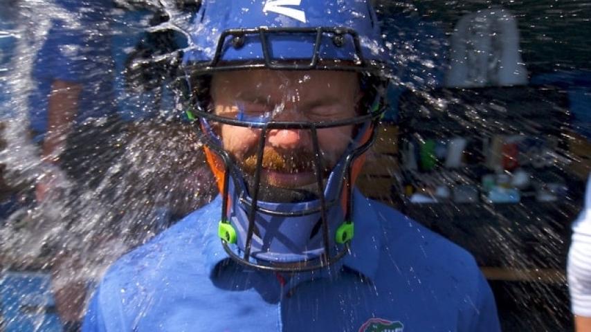 OMAHA, Neb. – The busiest guy at the College World Series Monday isn’t in the lineup. He won’t hit, pitch or go in to play shortstop. He’s sitting in a room near the third base dugout – the bunker, they call it – peering at monitors.