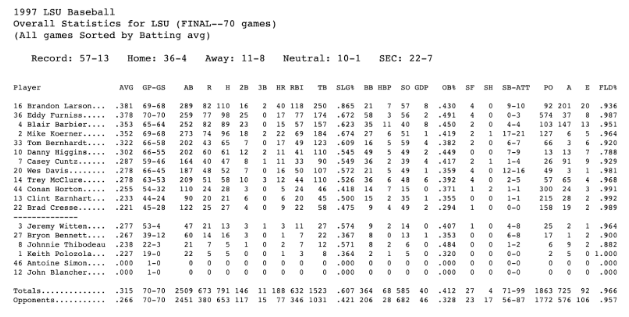LSU baseball's record-setting 1997 season: The lineup