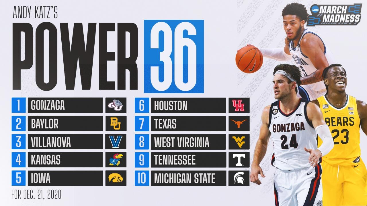 Gonzaga is undefeated and ranked No. 1 in the AP poll and in Katz's Power 36 rankings, but the 'Zags aren't without room to improve. In fact, their 3-point shooting (29.1 percent) ranked 244th nationally through Dec. 14.