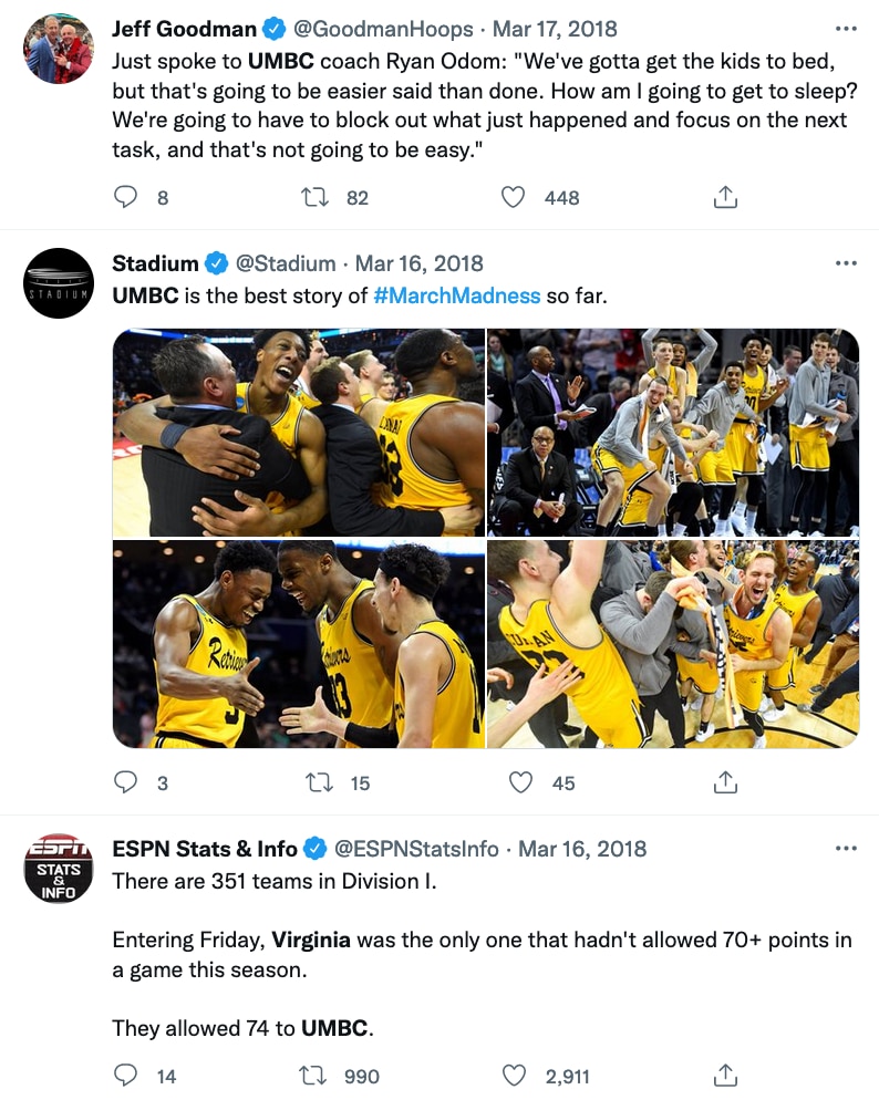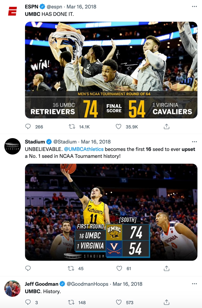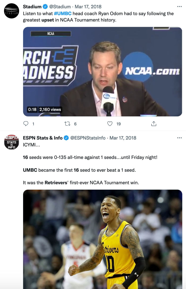 As part of krikya18.com's NCAA Video Vault series, we're diving into UMBC's historic upset as a No. 16 seed over No. 1 seed Virginia in the first round of the 2018 NCAA Tournament — the first 16-over-1 upset in the history of the men's tournament.