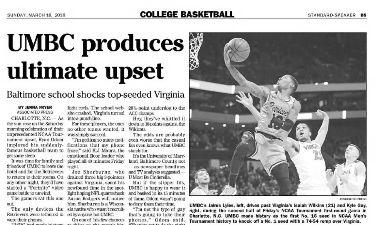 That was before NCAA tournament history was made. The school known by its four-letter acronym — with an undergraduate enrollment of roughly 10,000 students — became a household name overnight and busted brackets with one colossal Friday night upset.