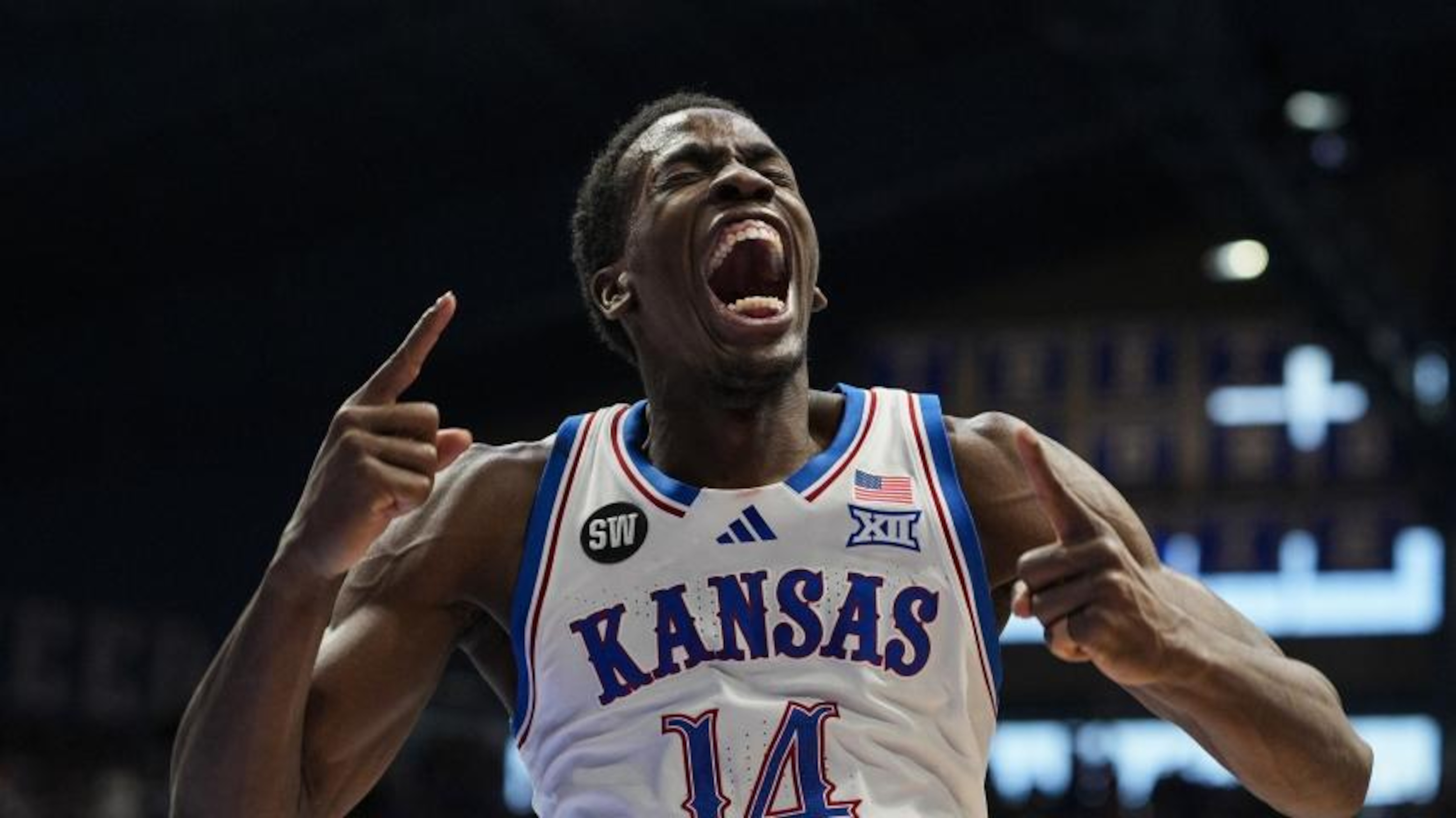He's got 25 points and No. 8 Kansas is being tested!
