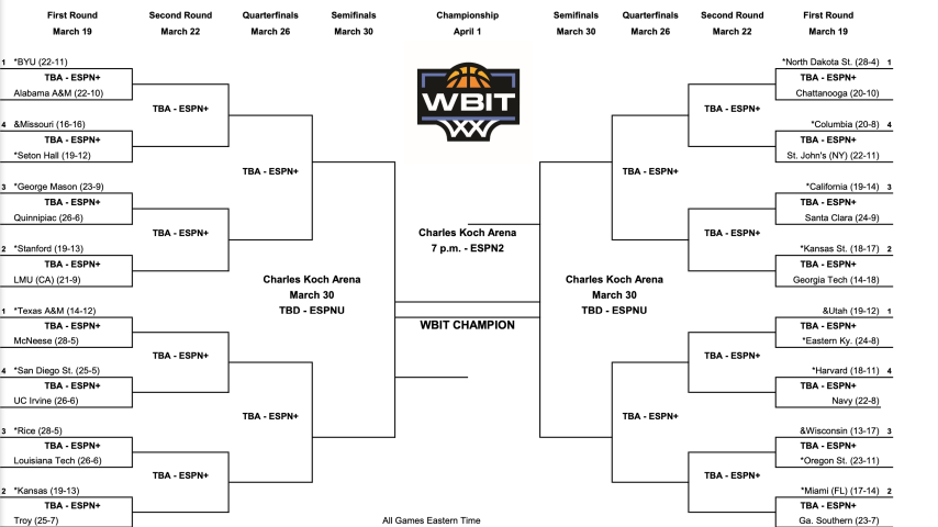 Brigham Young, North Dakota State, Utah and Texas A&M highlight the 32-team field for the 2026 Womenโ€™s Basketball Invitation Tournament (WBIT), released today by the WBIT selection committee.
