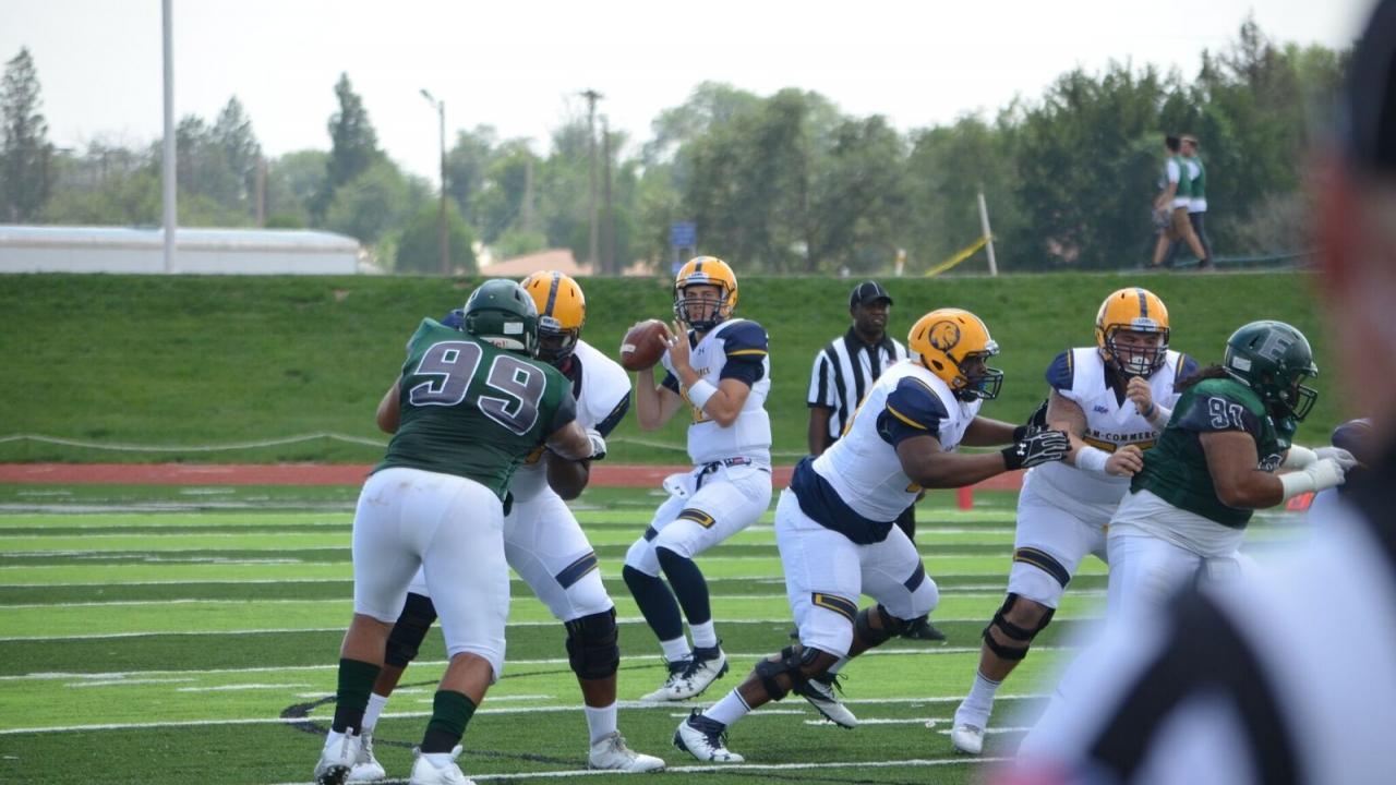 "I ended up winning the second-string spot. And then the starter goes down in Week 4 or 5. I go in there and throw two touchdowns in the second half and we end up winning. I started the week after that, threw for three touchdowns and ran for one. Three games after that, I break my leg. I was devastated, I was so close to where I wanted to be. But then I ended up beating out the San Diego player of the year my sophomore year. I started, but we both played a lot. Then A&M-Commerce called me up. It was a no-brainer for me."