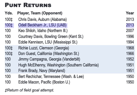 - T-7th in LSU history in longest punt return for a touchdown: 89 yards (vs. Ole Miss, 2012)
