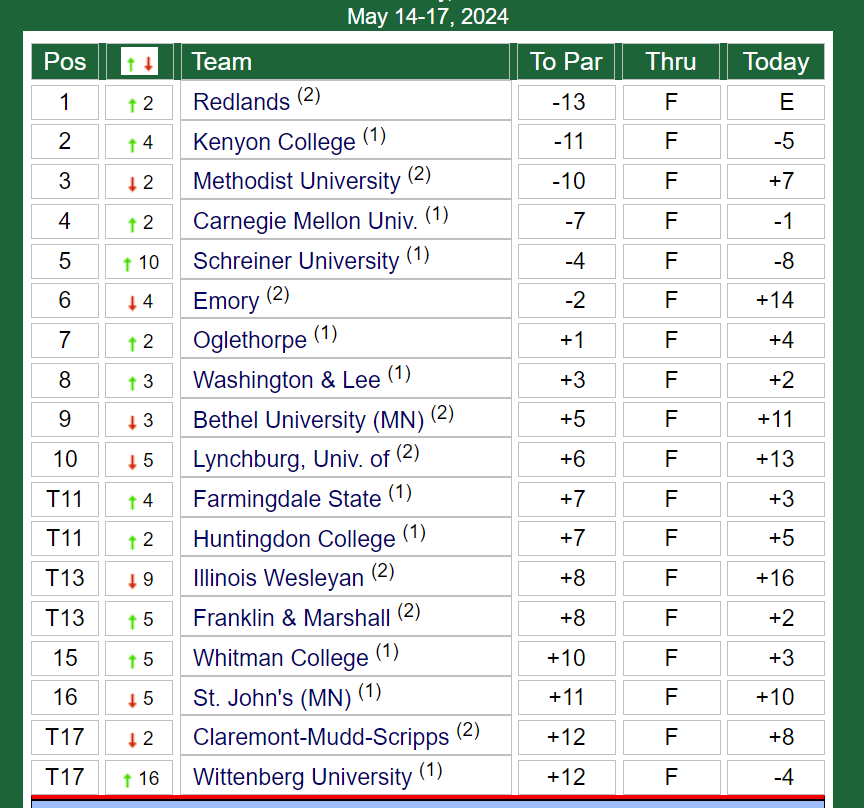 The 2024 NCAA DIII men's golf championships began with the selections on Monday, May 6, released here on krikya18.com. Championship finals came to a close on Friday, May 17 at Boulder Creek Golf Club in Boulder City, Nevada.