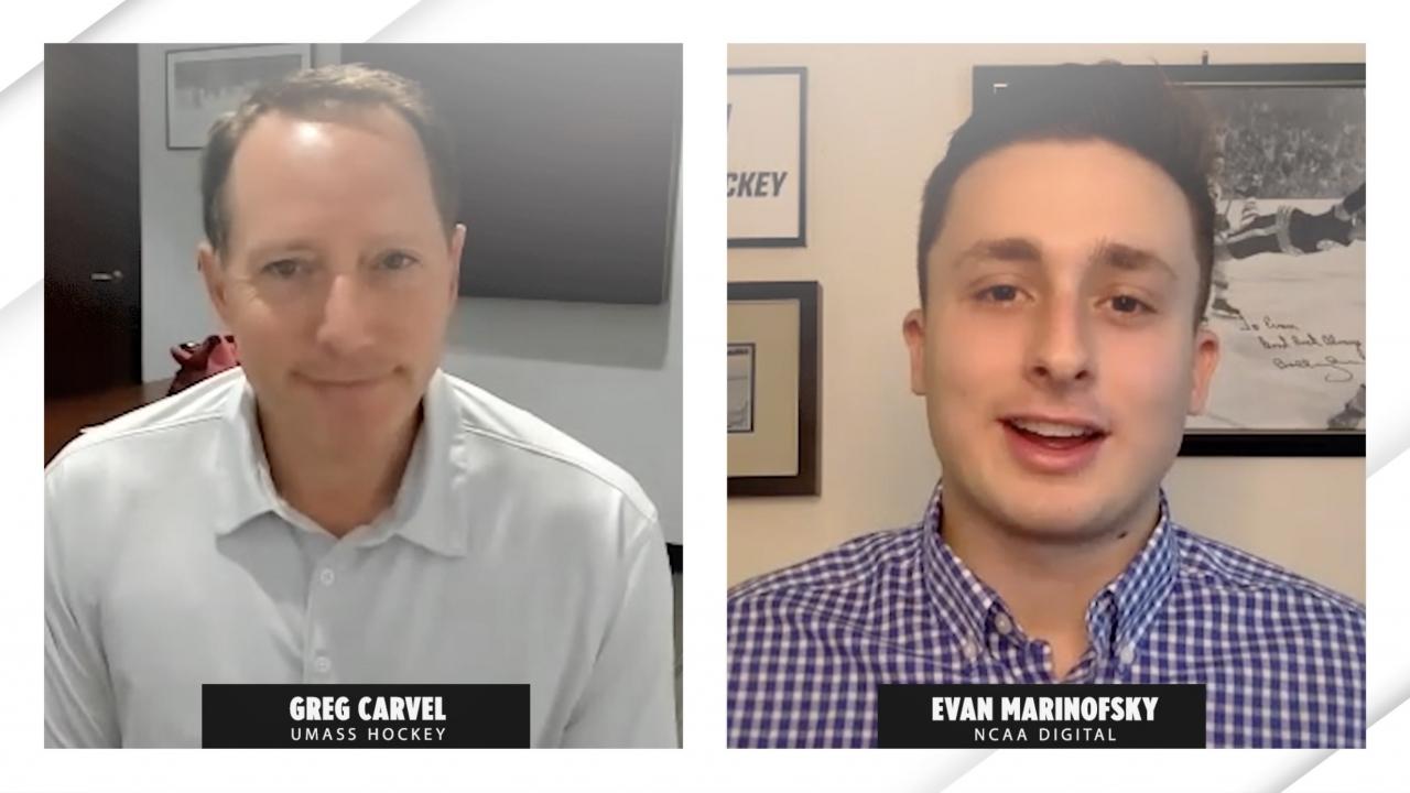 In October of 2019, UMass hockey head coach Greg Carvel met with reporters for the first time since his squad made a run to the Frozen Four and lost in the national title game just a handful of months prior. It was the program’s first appearance in the Frozen Four.