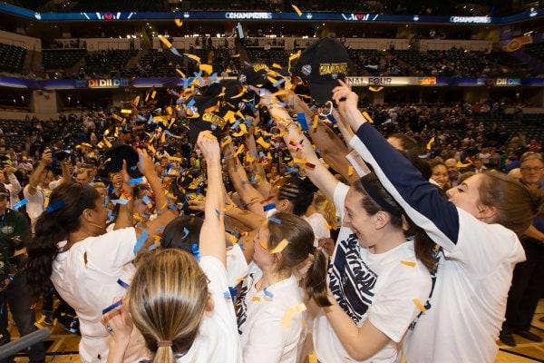 The UConn women's basketball team won two national championships during its 111 game winning streak.
