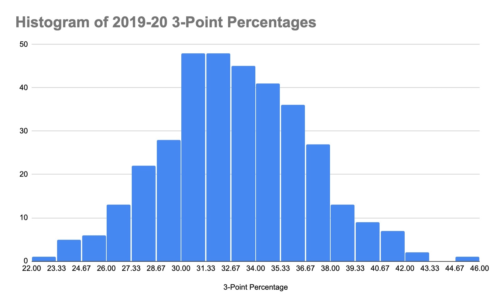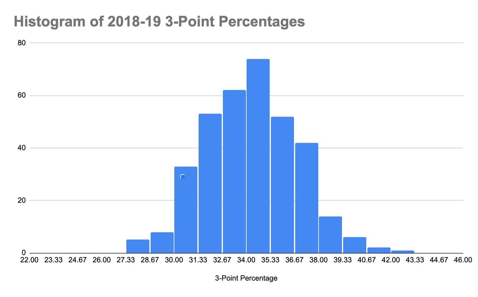 - There are more higher-percentage-shooting teams and more lower-percentage-shooting teams than season. Basically, it's harder — or at least, less likely — to be an average 3-point shooting team this season. Isn't that weird? Actually, not really, there's an explanation for it.
