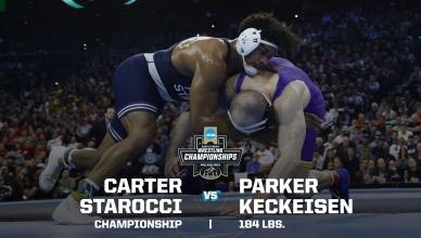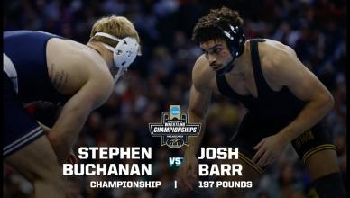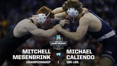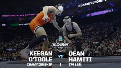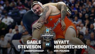 NCAA college wrestling home DI Men's Wrestling Penn State wins the 2025 NCAA DI men's wrestling team title HistoryBrackets HEADLINES DI Men's Wrestling 'The Smashing Machine' Mark Kerr vs. Randy Couture: 1992 NCAA wrestling title highlights (190 lbs.) DI Men's Wrestling Dan Hodge Trophy: History, winners and how it works DI Men's Wrestling Virginia Tech wrestling coach donates kidney to athlete's father 2025 NCAA Championships Gable Steveson vs. Wyatt Hendrickson — 285 pounds Stephen Buchanan vs. Josh Barr — 197 pounds Carter Starocci vs. Parker Keckeisen — 184 pounds Keegan O'Toole vs. Dean Hamiti — 174 pounds Mitchell Mesenbrink vs. Michael Caliendo — 165 pounds Antrell Taylor vs. Joey Blaze — 157 pounds Caleb Henson vs. Ridge Lovett — 149 pounds Lucas Byrd vs Drake Ayala — 133 pounds Vince Robinson vs. Troy Spratley — 125 pounds Carter Starocci vs. Parker Keckeisen — 184 lbs. Brothers meet in historic match HISTORIC MOMENTS Matt Ramos upsets 3x national champion Spencer Lee Kyle Dake wins fourth title in fourth different weight class Snyder, Coon rematch in heavyweight showdown Rob Rohn mounts double-digit comeback for title Dan Gable vs. Larry Owings: FULL 1970 NCAA title match at 142 pounds Cael Sanderson holds the top spot in wrestling record books Wrestler of the Decade winner Kyle Dake talks historic Cornell career, four NCAA titles Hawkeye heroes claim 23 wrestling team titles Historical programs Penn State wrestling championships: History, stats, records from the dynasty Oklahoma State wrestling championships: History, statistics Iowa wrestling championships: History and records from the dynasty Wrestling Legends Jordan Burroughs: College wrestling stats, titles, history David Taylor: College wrestling stats, titles, history Cael Sanderson: College statistics, records, championships Dan Gable: College wrestling stats, titles, history Division I Wrestling Championships March 19-21, 2026 Rocket Arena | Cleveland, OH Game Program How the men's DI NCAA college wrestling championship works How a college wrestling match is scored Dan Hodge Trophy: History, winners and how it works What is the ultimate college wrestling warm-up game? These are the 5 best places to watch a college wrestling match NCAA adds women’s wrestling as 91st championship Analyzing the strength of the college wrestling-to-Olympics pipeline Follow DI Wrestling