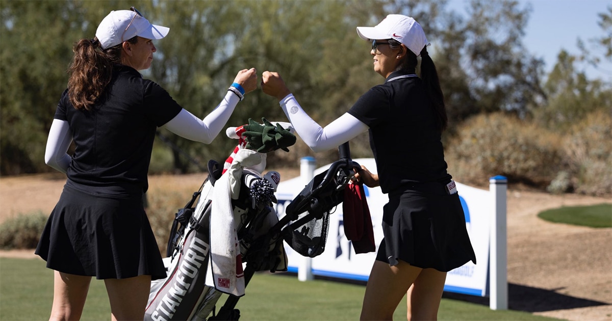 No. 1 Stanford and No. 2 Oregon square off for the 2022 DI women's golf championship today at Grayhawk Golf Club in Scottsdale, Arizona. Stanford's Brooke Seay and Oregon's Ching-Tzu Chen are the first two out on the course.