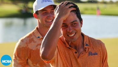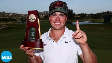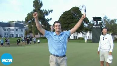 DI Men's College Golf - Home DI men's golf Oklahoma State beats Virginia for the 2025 DI men's golf national title How it happenedchampionship history championship highlights 2025 - Oklahoma State 4, Virginia 1 2024 - Auburn 3, Florida State 2 2023 - Florida 3, Georgia Tech 1 2022 - Texas 3, Arizona State 2 Individual titles Ole Miss' Michael La Sasso wins 2025 title Florida's Fred Biondi wins 2023 title Vanderbilt's Gordon Sargent wins 2022 title Clemson's Turk Pettit wins 2021 title Pros in College Tiger Woods' 1996 NCAA highlights Phil Mickelson's 1992 NCAA highlights Scottie Scheffler's 2017 NCAA highlights Bryson DeChambeau's 2015 NCAA highlights Spieth vs. Thomas 2012 NCAA highlights Patrick Cantlay's 2011 NCAA highlights Hovland & Wolff's 2018 NCAA highlights Dustin Johnson's 2007 NCAA highlights Division I Men's Golf Championship May 29 - June 3, 2026 Omni La Costa Resort & Spa | Carlsbad, CA Game Program NCAA menβs golf individual and team champions Where Masters Tournament winners played golf in college The college careers of the USA men's golfers at the 2024 Olympics Follow Men's Golf