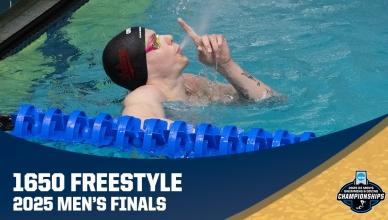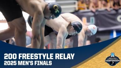 DI Men's College Swimming & Diving - Home DI Men's Swimming & Diving Texas wins 2025 NCAA DI men's swimming and diving championships Champs HistoryRelated videos 2025 CHAMPIONSHIP 200 men's butterfly 100 men's backstroke 200 men's freestyle 400 freestyle relay 200 backstroke 100 freestyle 1650 freestyle 200 breaststroke 200 freestyle relay 50 freestyle 800 freestyle relay 200 medley relay Division I Men's Swimming & Diving Championships March 25-28, 2026 Georgia Tech Aquatic Center | Atlanta, GA Game Program Championship Recaps 🤘 Texas wins 2025 🔱 Arizona State wins 2024 🐻 California wins 2023 🐻 California wins 2022 🤘 Texas wins 2021 🐻 California wins 2019 🤘 Texas wins 2018 Follow DI Men's Swim & Dive